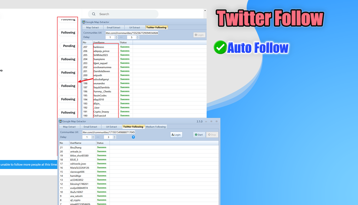 -- Added: Bulk URL extraction tool for fast multi-domain crawling -- Added: Twitter Auto-Following feature for marketing automation -- Enhanced: Data validation system for duplicate removal